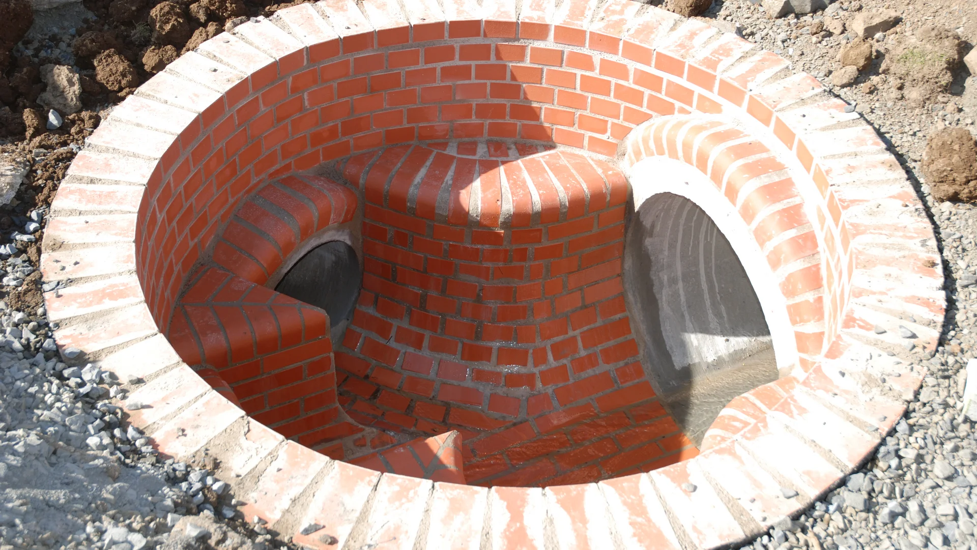 Verlegung von Abwasserkanälen und Versorgungsleitungen (Wasser, Gas, Strom).