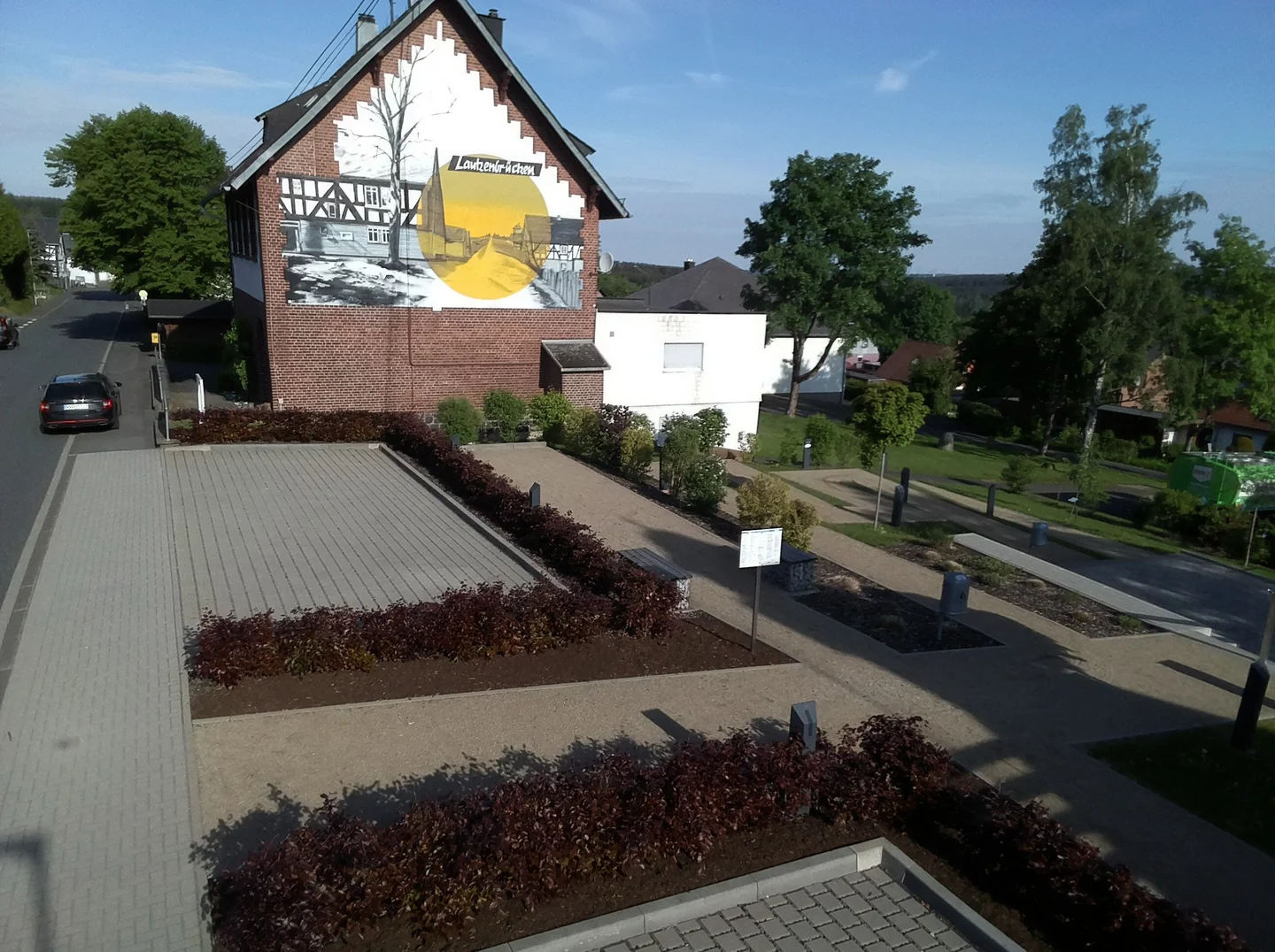 Für die Ortsgemeinde Lautzenbrücken wurde ein neuer Dorfplatz als zentraler Begegnungs- und Aufenthaltsort errichtet. Neben funktionalen Flächen wurde besonderer Wert auf eine ansprechende Gestaltung mit Sitzmöglichkeiten, Grünbereichen und Beleuchtung gelegt.