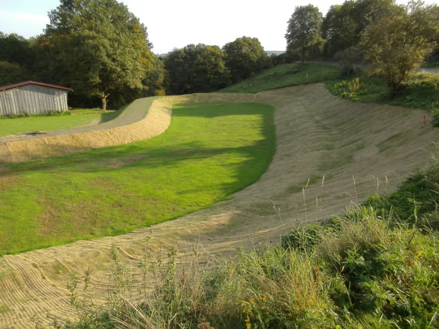 Im Bereich des Regenrückhaltebeckens wurde eine 800 m³ Bodenverbesserung mit hydraulischem Bindemittel (Kalk-Zement-Gemisch) durchgeführt. Zudem war eine Wasserhaltung während der Arbeiten erforderlich.