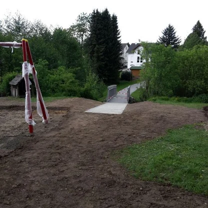 Für die Ortsgemeinde Heiligenroth wurde eine neue Fußgängerbrücke über den Ahrbach errichtet. Neben der Brücke selbst umfasste das Projekt auch den Bau der Brückenwiderlager, die Gestaltung der Zuwegung sowie ergänzende Arbeiten im Umfeld. Ziel war es, eine sichere und langlebige Querungsmöglichkeit zu schaffen und den Zugang für Fußgänger attraktiv zu gestalten.