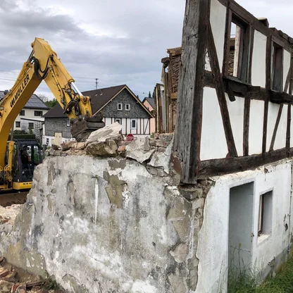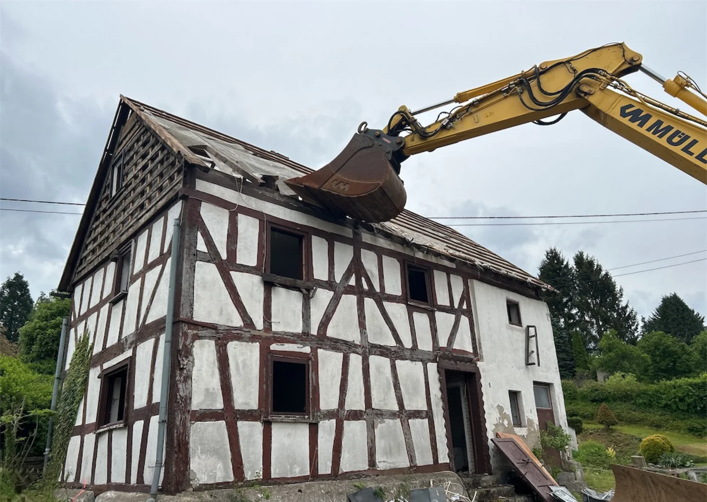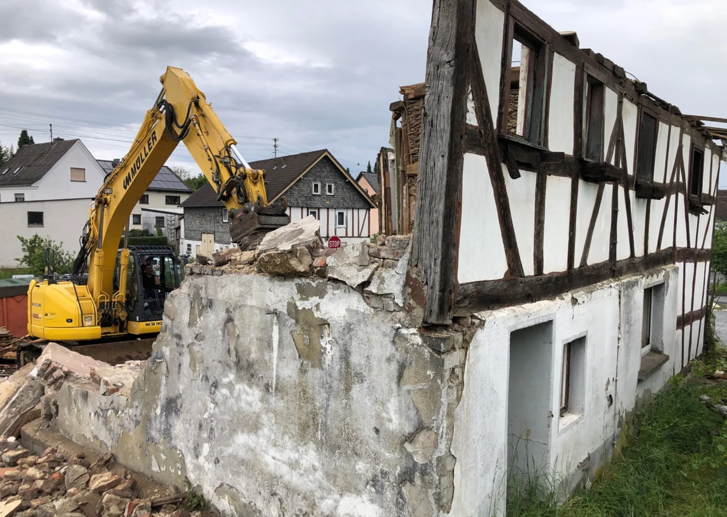 Für die neue Verkehrsführung der B8 und B413 durch die Gemeinde Höchstenbach ist der Abbruch des Gebäude notwendig.