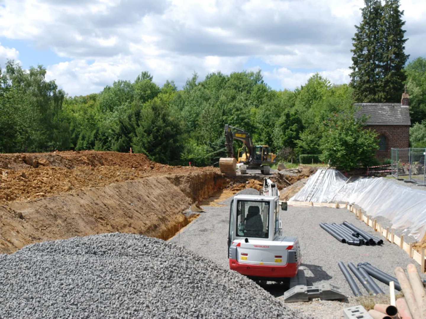Im Rahmen der Friedhofserweiterung in Nentershausen führte die Firma Kurt Müller umfangreiche Erd-, Entwässerungs- und Gestaltungsarbeiten durch. Neben der Anlage neuer Tiefengräber wurden die Flächen funktional erweitert und optisch aufgewertet, um den Friedhof langfristig nutzbar und gepflegt zu halten.